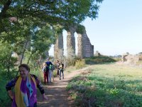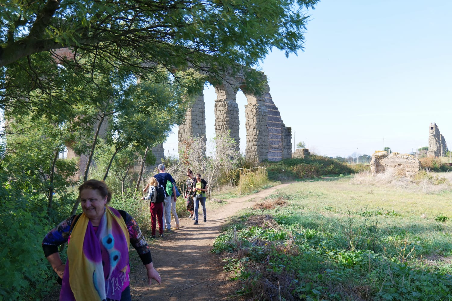 Po důkladném prozkoumání univerzitní sbírky jsme se vydali za hranice botanické zahrady, abychom prozkoumali i římskou městskou zeleň. Navštívili jsme park Parco degli Acquedotti (Park akvaduktů), proslulý svými antickými akvadukty a kde se rozlehlé, travnaté plochy střídají s typickými středomořskými křovinami a majestátními piniemi. Zde pro nás byl jeden objev zásadní: narazili jsme na samičí rostlinu vavřínu vznešeného neboli bobkového listu (Laurus nobilis), kterou u nás v botanické zahradě nemáme a také je to důkaz toho, že se v dané lokalitě populace vavřínu udržuje přirozenou cestou, nikoli jen vegetativním množením. Ovšem celkový dojem z parku byl mírně rozporuplný – vzhledem k historickému významu akvaduktů jsme očekávali větší míru kultivovanosti a důslednější údržbu parkové zeleně. Přesto tamní lidé park hojně využívají k relaxaci a sportu a dokonce jsme tu narazili i na malou komunitní zahrádku, jejíž uspořádání bylo velmi neformální.