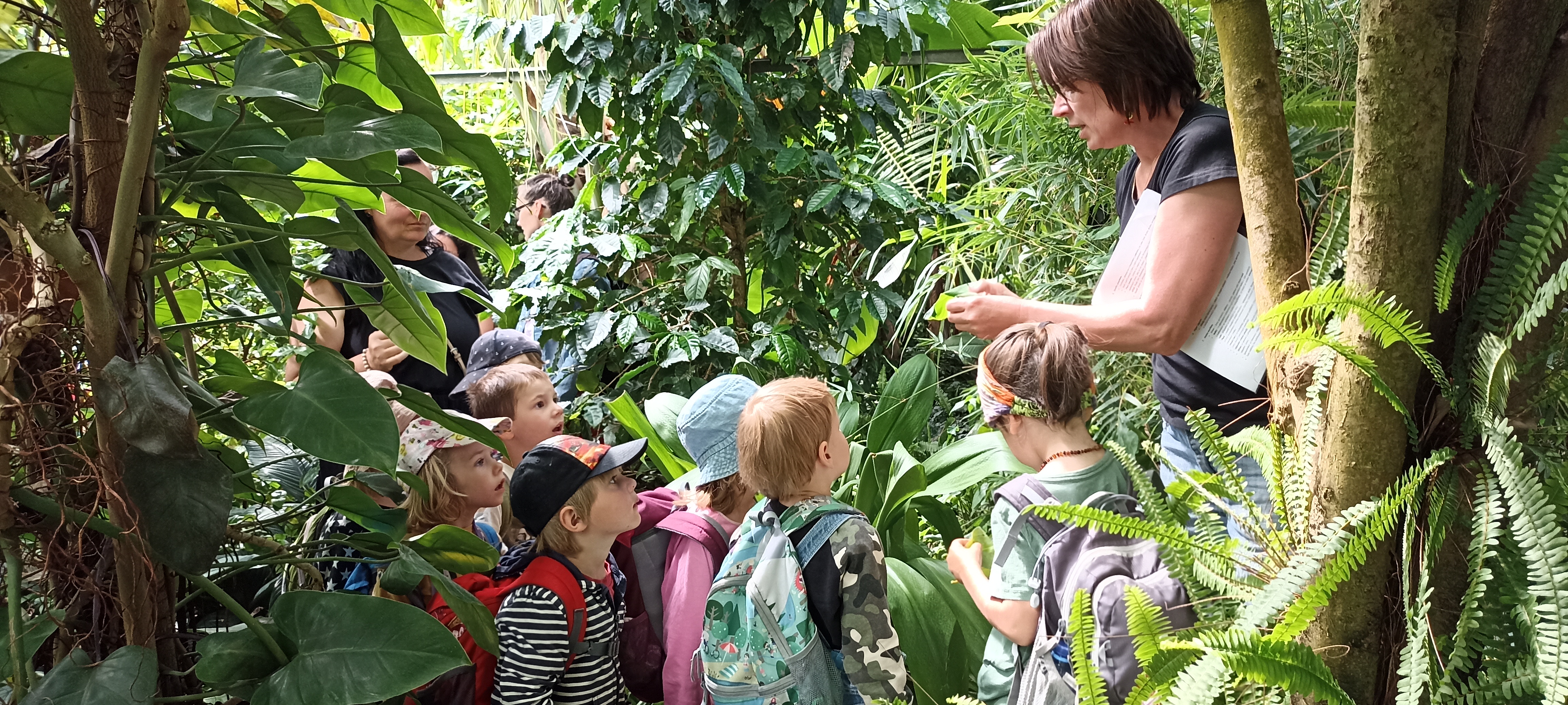 Děti absolvovaly komentovanou prohlídku tropického skleníku s názornou ukázkou výrobků z těch užitkových rostlin, které u nás ve skleníku mohly spatřit.