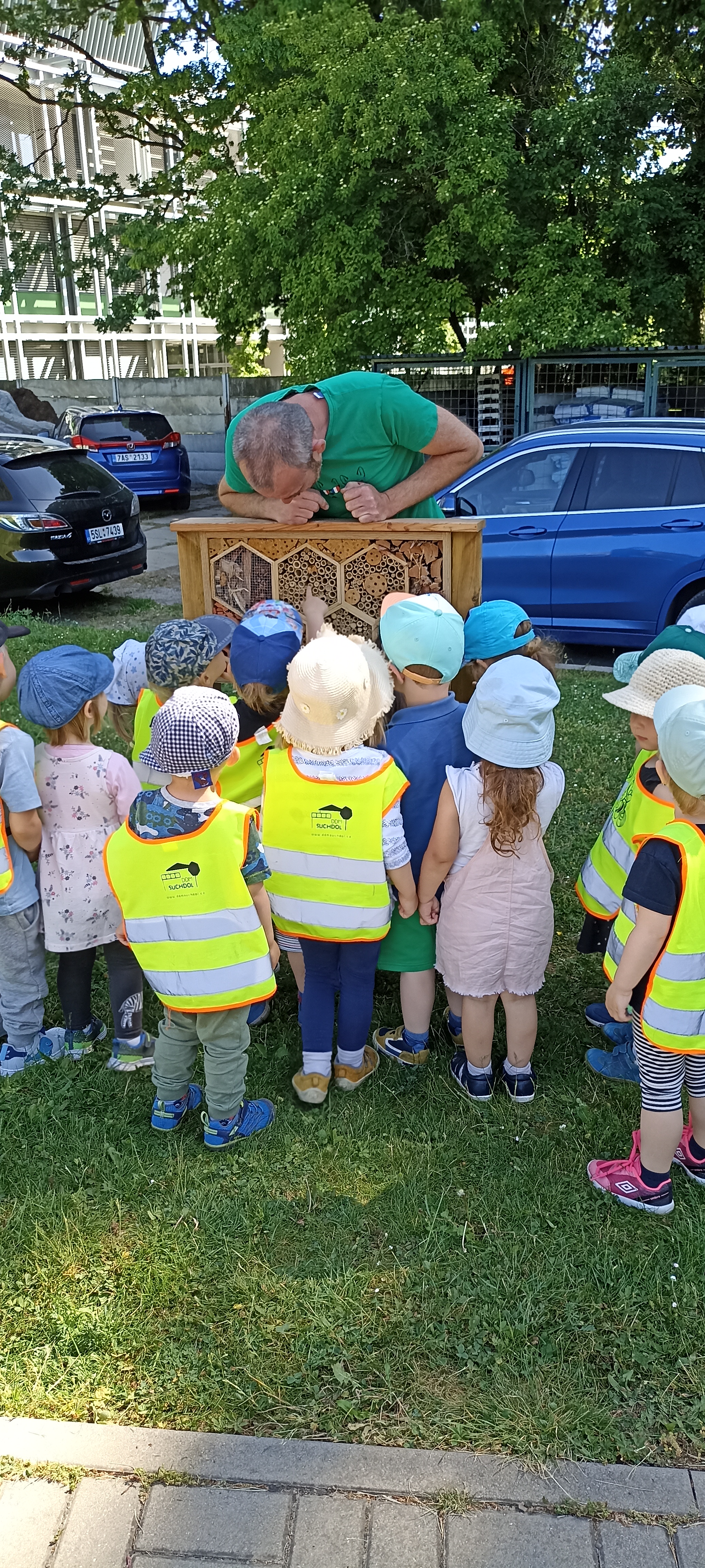 Od kolegy z Petra Jůzy z FAPPZ dostaly výklad o včelařství, s možností ochutnávky medu či ukázkou hmyzího hotelu. A velkou premiéru měly naše zbrusu nové pracovní listy, které si předškoláci zkusili vyplnit. Na závěr je čekalo překvapení v podobě malování kamínků a malá odměna