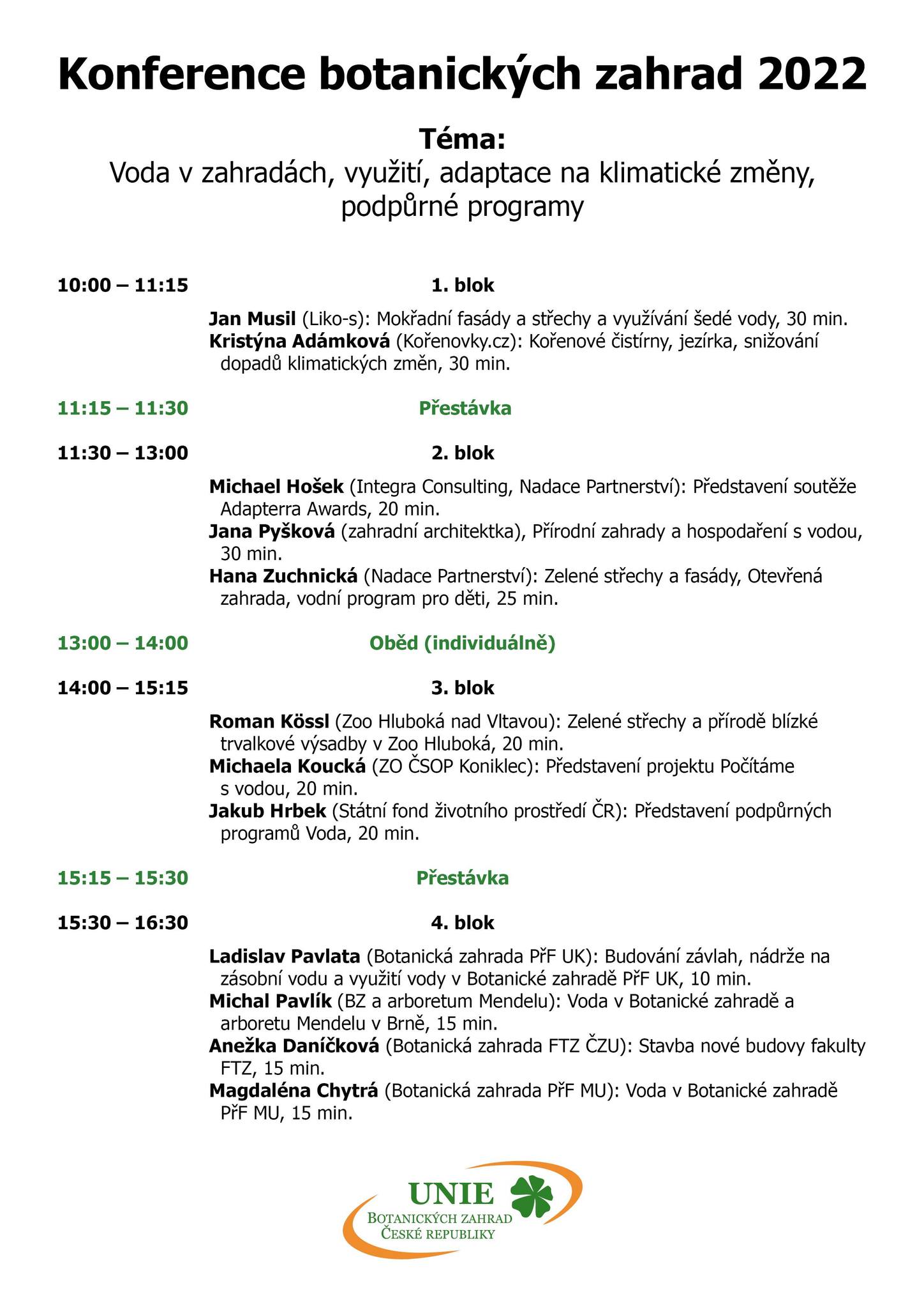 Dne 9.11. 2022 se konala každoroční konference, která byla letos zaměřena na velmi aktuální téma – Šetření vodou a adaptace na klimatickou změnu. Zástupci jednotlivých botanických zahrad z celé ČR měli k tomuto tématu velmi zajímavé a podnětné přednášky. I naše botanická zahrada, v zastoupení s Ing. Anežkou Daníčkovou a Ing. Lucií Ackermann Blažkovou, Ph.D., MBA, se aktivně zúčastnila této konference. Pokud by někoho toto téma zaujalo, podobná konference se bude konat v Praze, dne 24.11.2022 (https://www.pocitamesvodou.cz/akce/konference/).