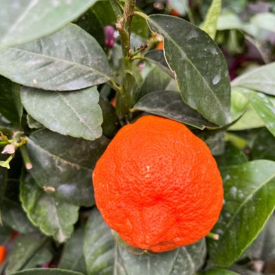 - Otcovská rostlina: Selektovaná mandarinka (Citrus x reticulata 'Scabiosanus-Zdenekii'), která vykazuje vysokou akumulaci cukrů a specifickou pigmentaci exokarpu, kterou hybrid plně převzal.