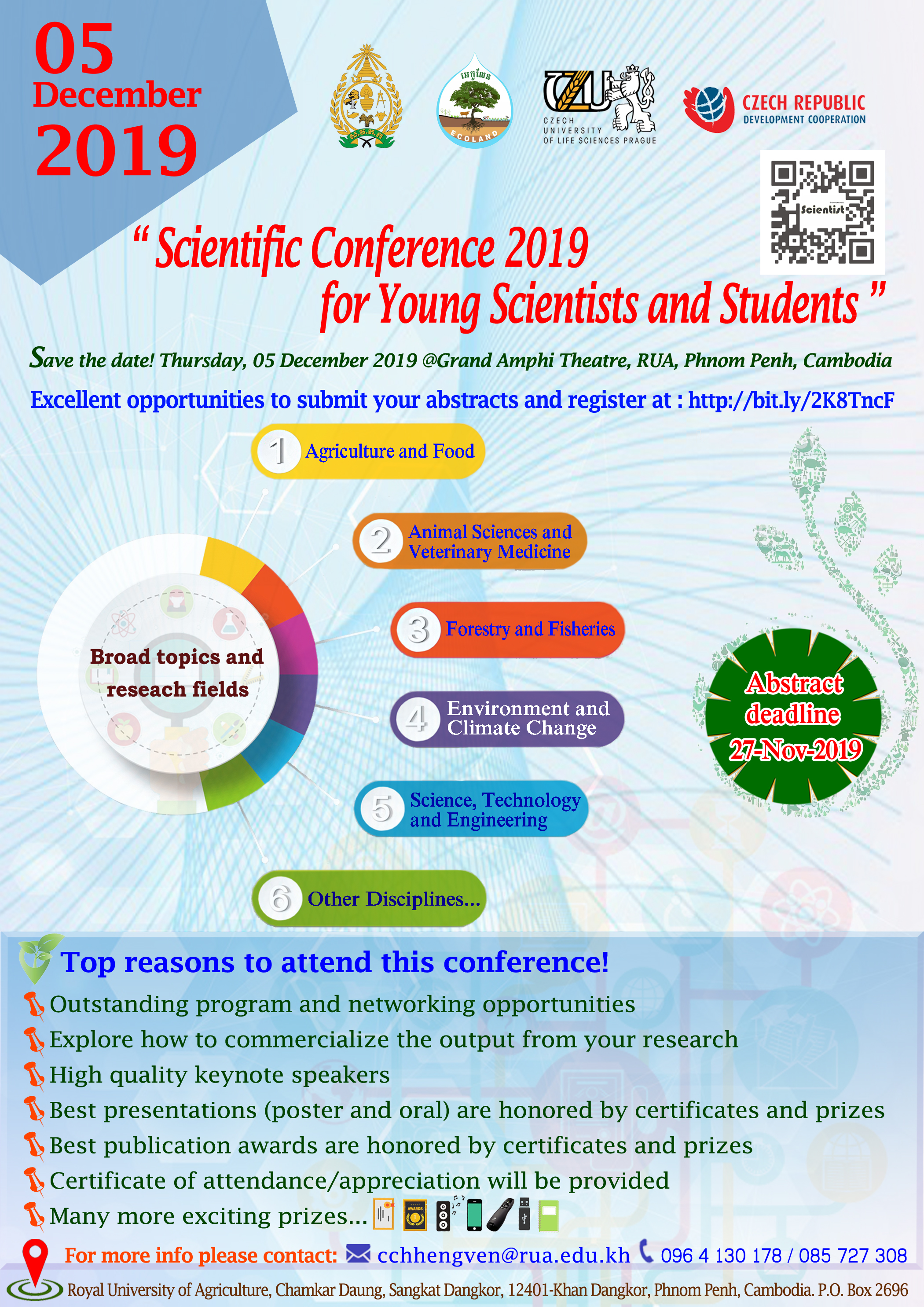 FTZ pořádala druhý ročník mezinárodní vědecké konference pro mladé vědce a studenty, která se konala 5. prosince 2019 na Royal University of Agriculture (RUA) v Kambodži.