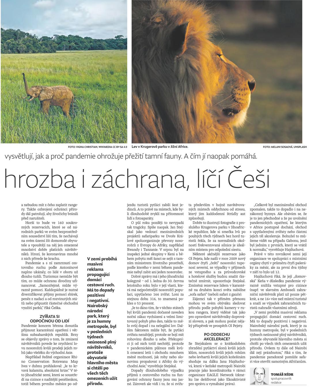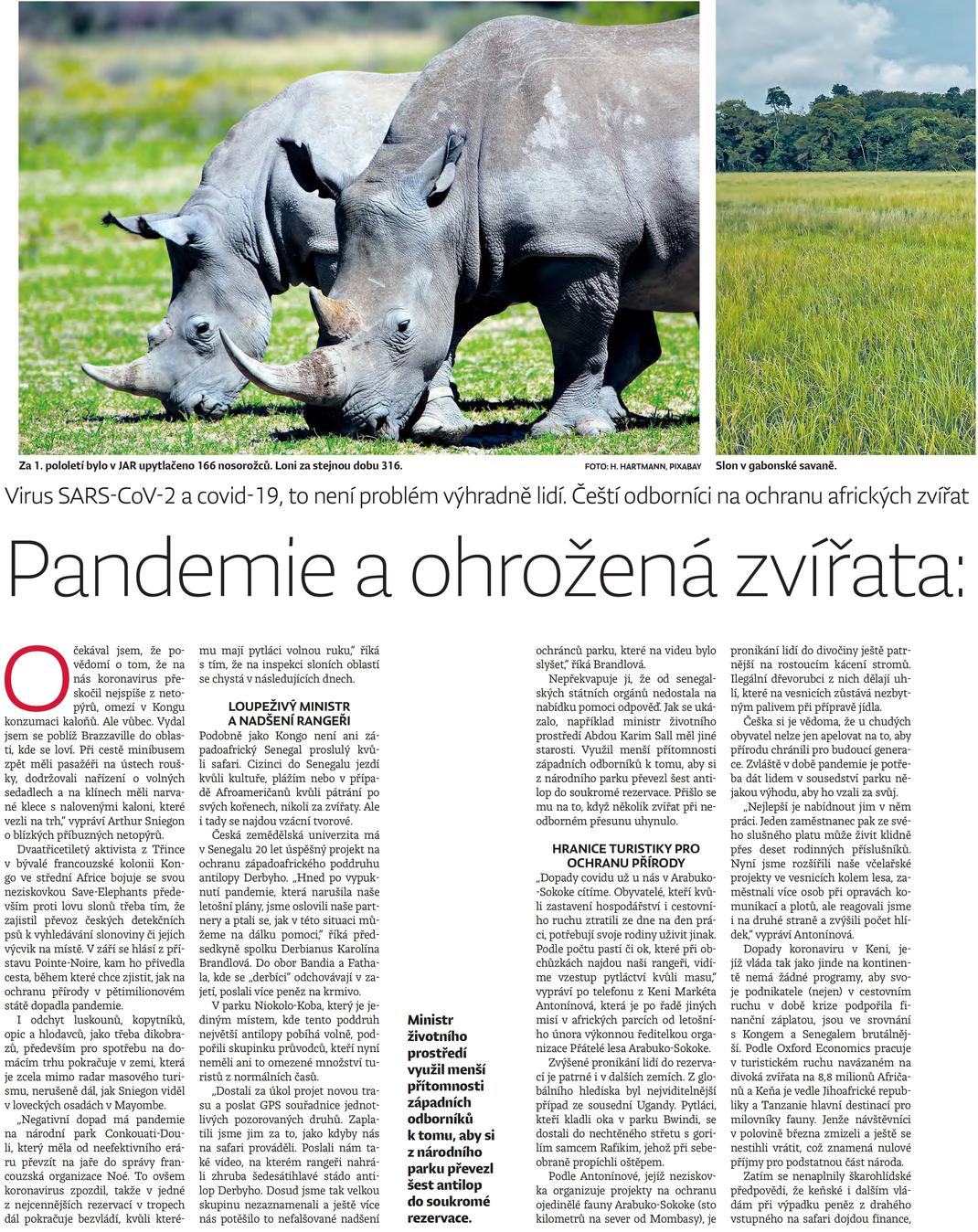 Dvaatřicetiletý aktivista z Třince v bývalé francouzské kolonii Kongo ve střední Africe bojuje se svou neziskovkou Save-Elephants především proti lovu slonů třeba tím, že zajistil převoz českých detekčních psů k vyhledávání slonoviny či jejich výcvik na místě. V září se hlásí z přístavu Pointe-Noire, kam ho přivedla cesta, během které chce zjistit, jak na ochranu přírody v pětimilionovém státě dopadla pandemie.