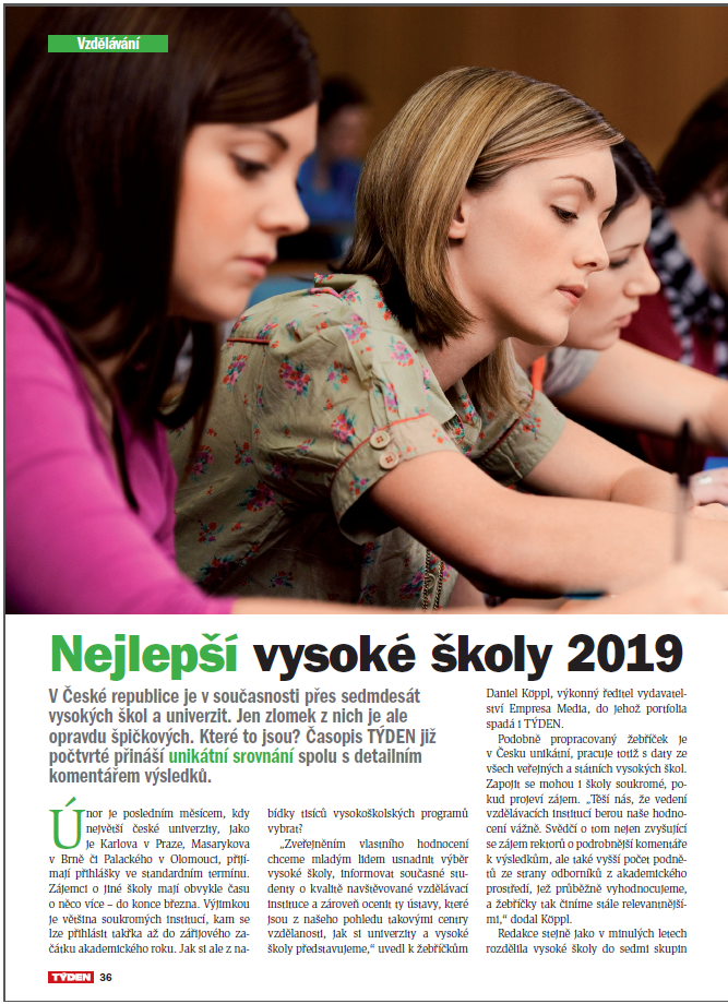 FTZ se umístila na třetím místě v žebříčku nejlepších vysokých škol 2019!