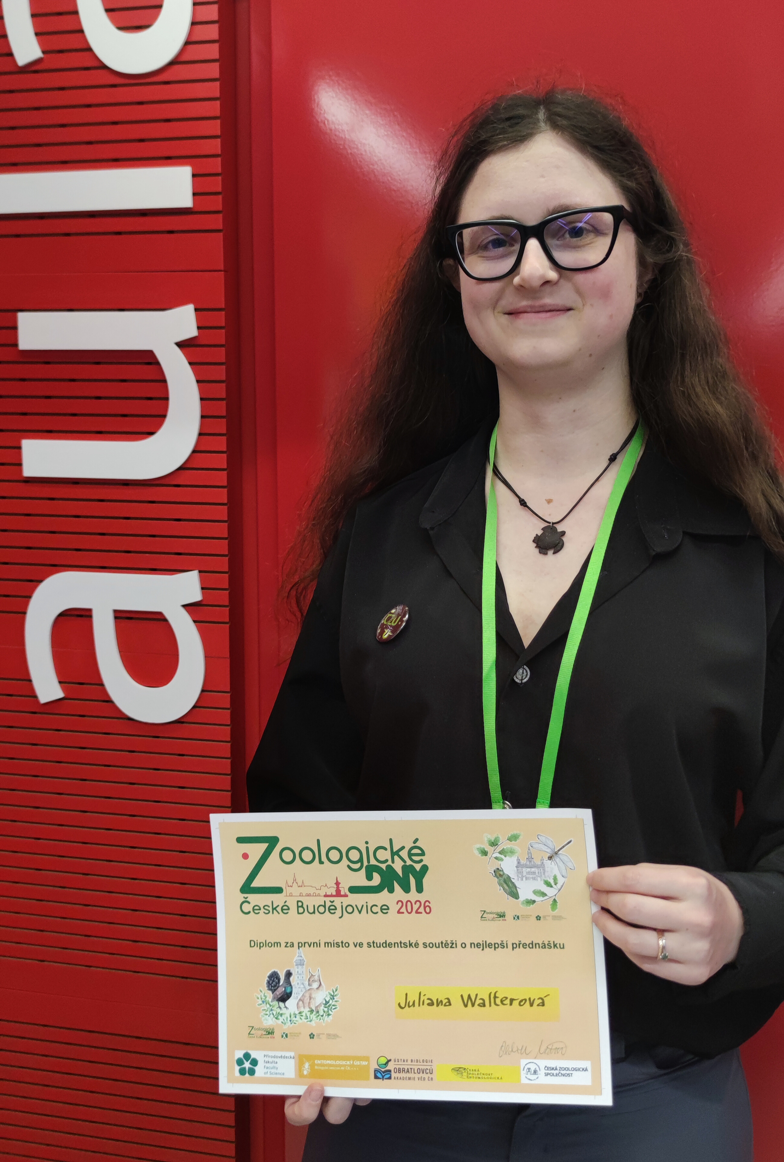 We are proud to share that Juliana Walterová, a student of the Faculty of Tropical AgriSciences, Czech University of Life Sciences Prague, received the Best Presentation Award at the conference Zoologické dny.