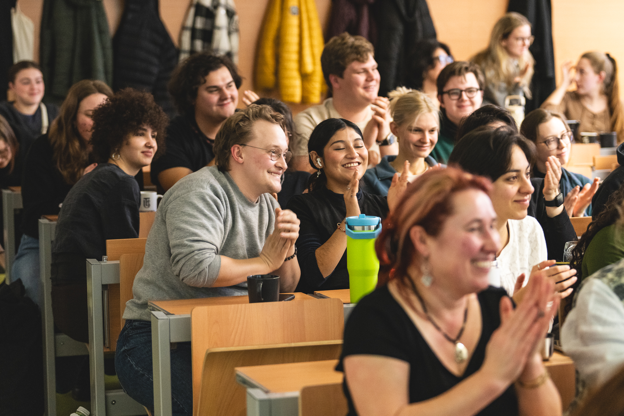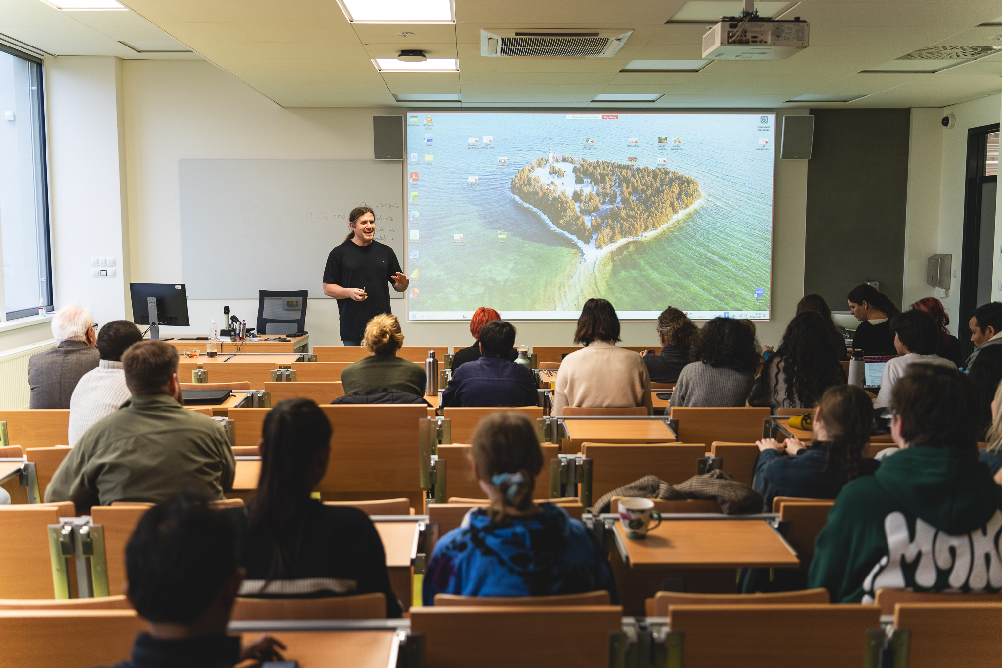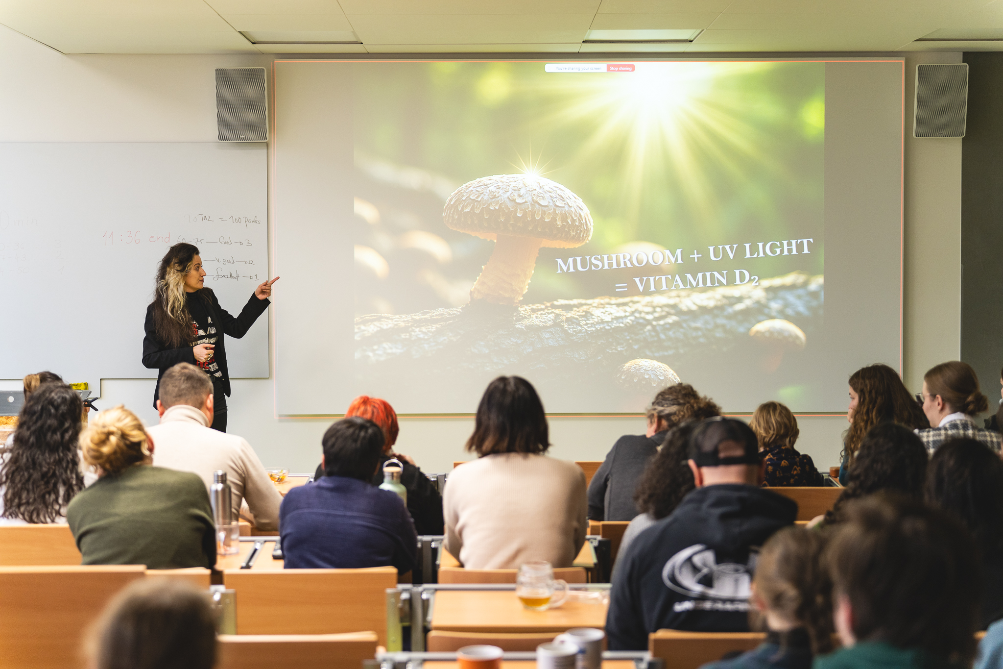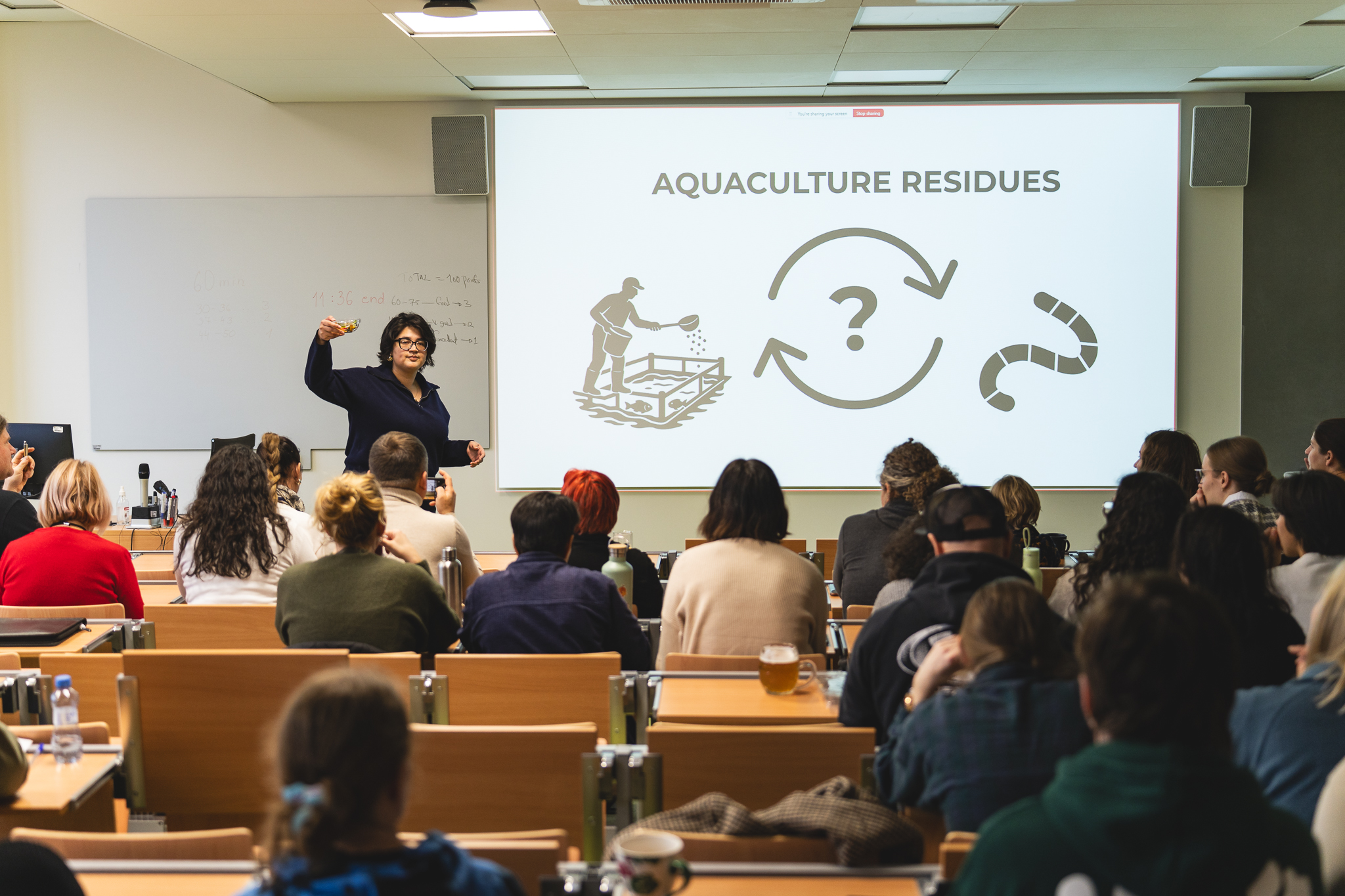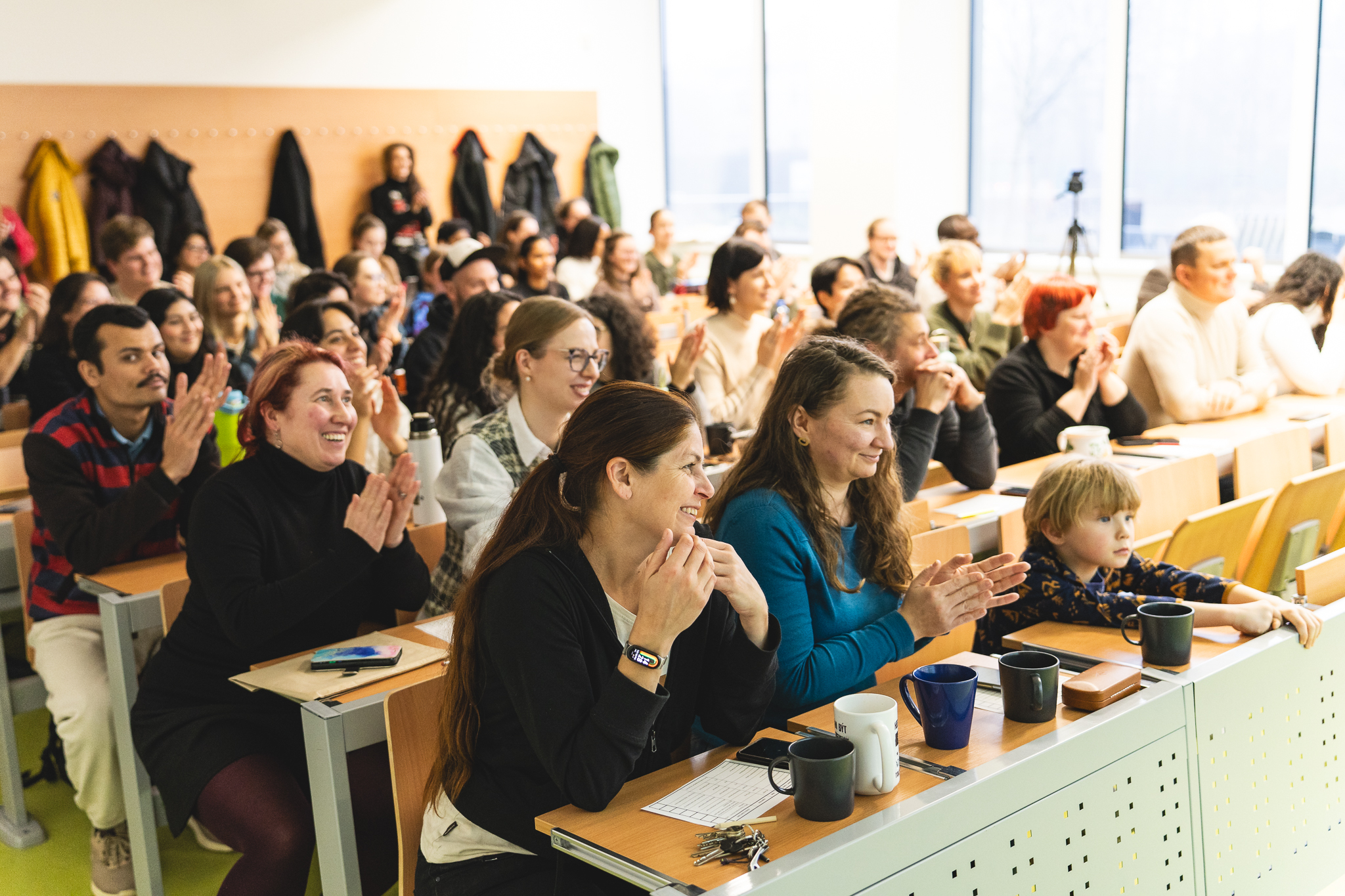 Six contestants faced a challenging task: to present their research in just five minutes, using only one slide, while relying on unlimited creativity. The audience enjoyed science presented in an engaging and unconventional way — through humour, poetry, comics and original props.
