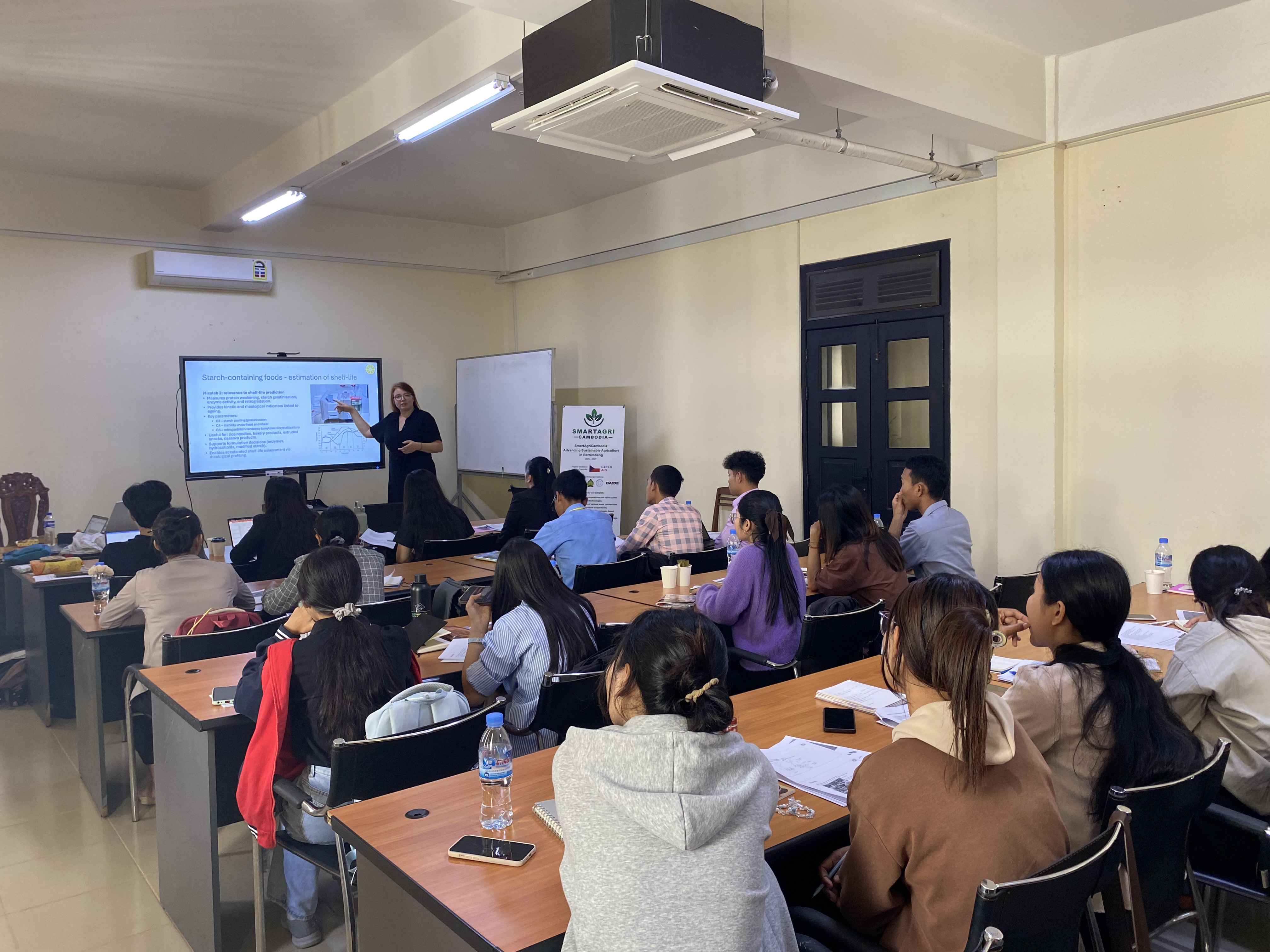 This training was organized as part of the SmartAgriCambodia: Advancing Sustainable Agriculture in Battambang project. Lessons were delivered by experts from the Czech University of Life Sciences Prague, Faculty of Tropical AgriSciences (FTZ), including Dr. Olga Leuner and Dr. Petra Chaloupková, who shared their knowledge on postharvest handling, food safety, packaging technologies, and marketing strategies tailored for tropical environments.